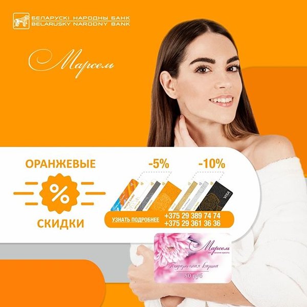Хотите сохранить красоту, данную вам от рождения? А может, вам необходимо преобразиться к торжественному мероприятию или важной встрече? ️ Весь декабрь всем новым клиентам, оформившим карту БНБ-Банка, сеть салонов красоты «Марсель» дарит специальную подарочную карту на любые услуги салона номиналом 50 BYN. Оплачивайте услуги картами БНБ-Банка и получайте скидки! Подробности узнавайте по телефонам: Шафарнянская 3 (Уручье) Коллекторная 3А (Немига) пр.газеты Правда 20 (Юго-запад) Некрасова 3А (Зеленый луг) Захарова 23 (площадь Победы)