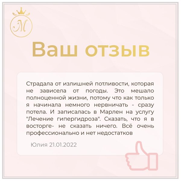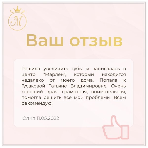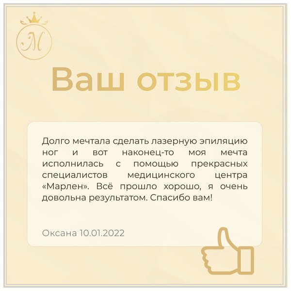 Коллективу центра эстетической медицины “Марлен” очень приятно получать обратную связь от пациентов и читать ваши прекрасные отзывы ⠀ Отзыв взят с портала relax.by