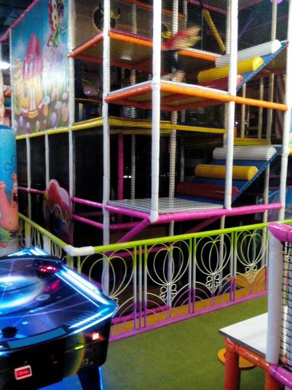 — Лабиринт с подвесным мостом, винтовыми горками, стеной для скалолазания, батутом, бассейном с шариками, огромной площадкой для пушечной зоны, водный батут, настенные развивающие игровые панели.