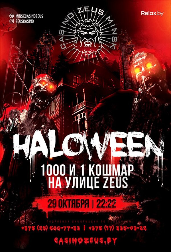 29 октября в 22:22! Казино ZEUS приглашает всех на жутко веселую ночь! Ждём вас! ул.Орловская 40а