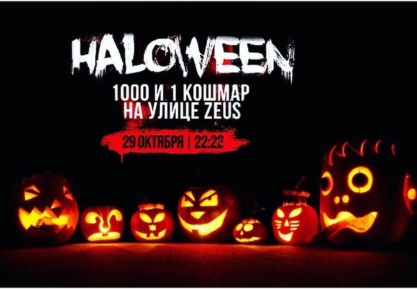 Уважаемые дамы и господа, а так же ведьмы, зомби, оборотни, вурдалаки, вампиры, мумии, франкенштейны и прочая нечисть, милости просим к нам 29 октября на Halloween! Вас ожидают 1000 и 1 кошмар на улице Zeus! Наши врата откроются в 22:22! Вас ждет завораживающее тематическое представление и шокирующая супер-игра! Мы проведем конкурс на самый ужасающий костюм, самого оригинального монстра ожидает устрашающий бонус! С нетерпением ждем вас на страшно зажигательный вечер по ул. Орловская 40а!