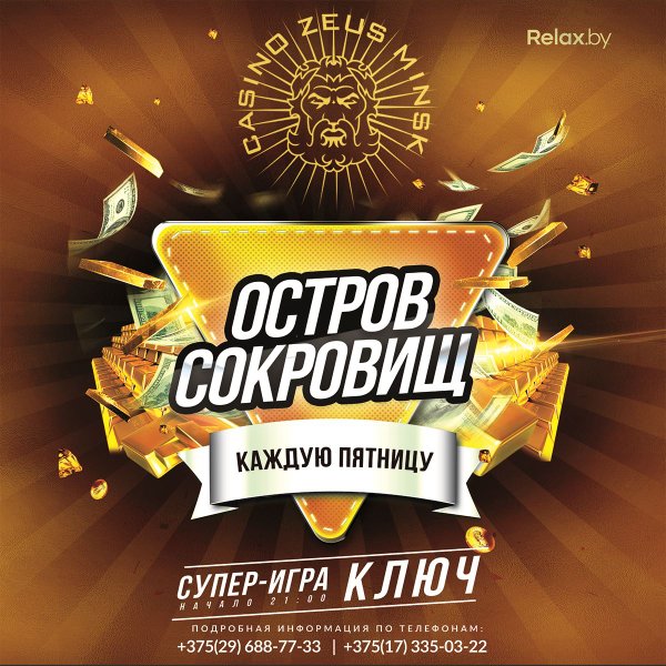 УЖЕ СЕГОДНЯ! ШОУ ОСТРОВ СОКРОВИЩ Именно вы можете стать победителем супер-игры КЛЮЧ!!! Казино ZEUS ул.Орловская 40 а