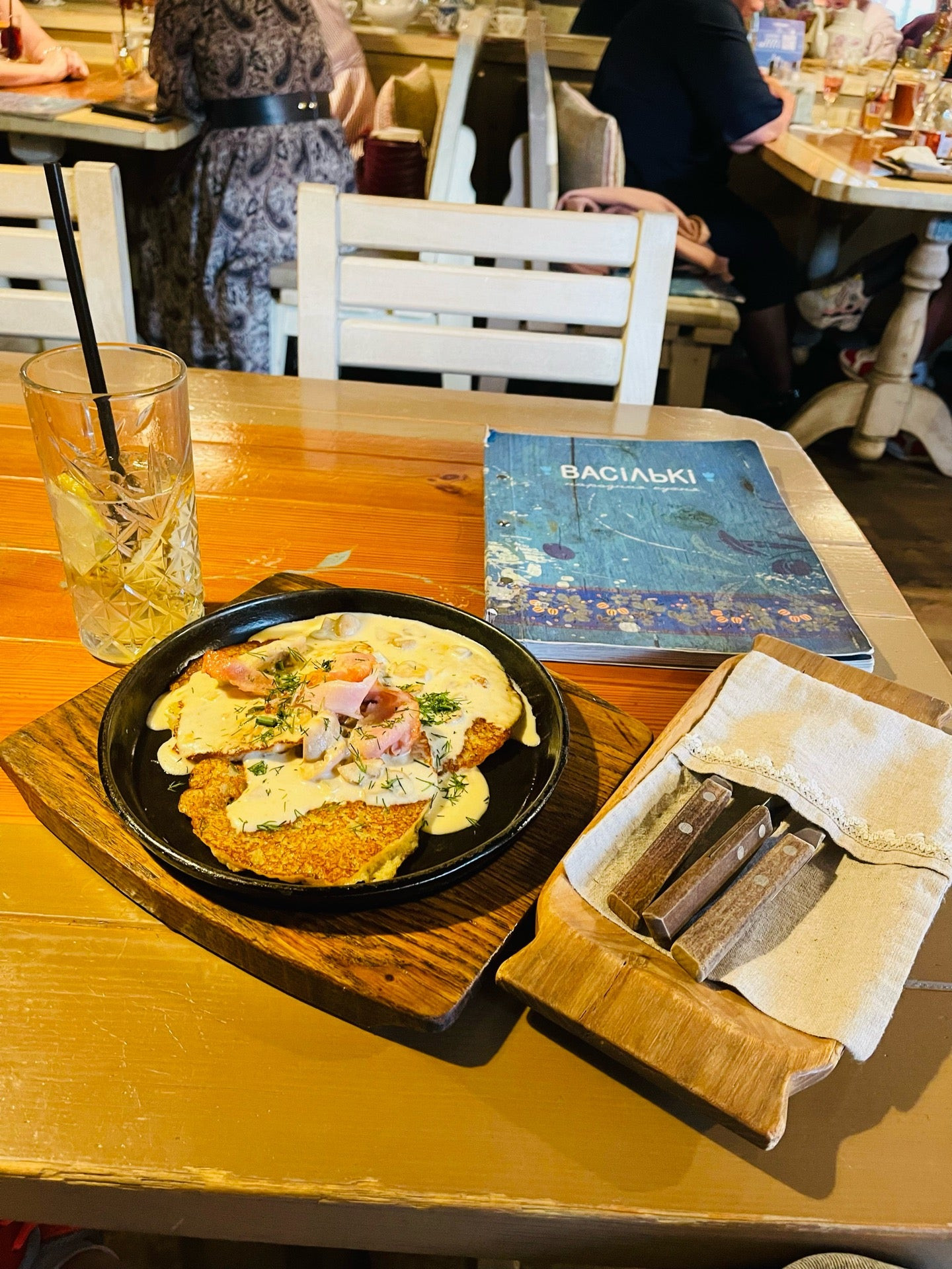 Ресторан с красивым интерьером идеально подходит для небольшой компании под новогодние корпоративы, дни рождения, банкеты. Все блюда подавались на красивых тарелках. Цены средние по Минску. Больше все понравился ростбиф с грибами и чем-то еще, уже…