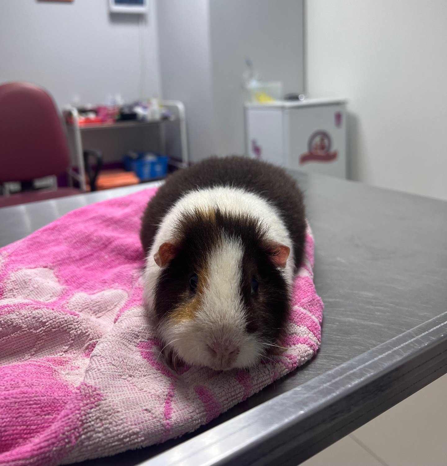 Приняли нас оперативно, ровно в назначенное время. Не очень понравилось то, что, как только мы начали рассказывать о проблемах, ветеринара вызвали в другой кабинет к морской свинке на минут 10. Мы остались ожидать в кабинете, куда на протяжении этого времени и далее периодически во время всего приема в кабинет (он проходной) входил персонал клиники, с громким звуком захлопывали дверь, проходили через комнату, где велся прием, проходили в другую дверь, снова с громким звуком ее захлопывали, громко разговаривали