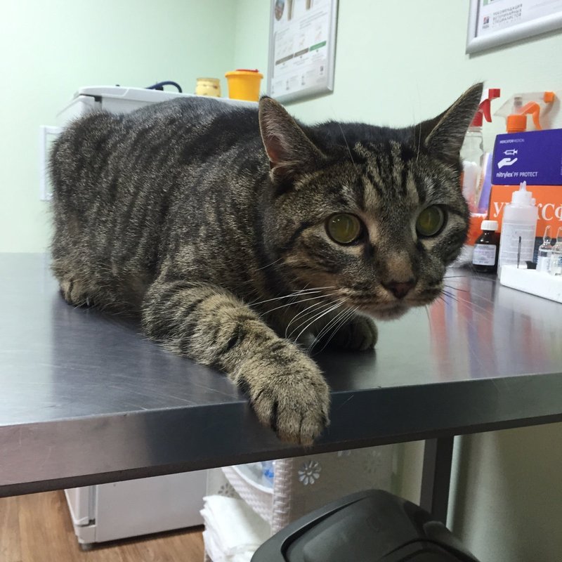 С апреля кошке был поставлен крайне тяжёлый диагноз. В другой клинике ей диагностировали «неоперабельную опухоль» и предложили паллиативную помощь. Мы не согласились с таким подходом, сделали цитологию, диагноз поставленный в другой клинике не подтвердился. Выявили другую природу заболевания и начали лечение от ФИП (фелинальный инфекционный перитонит).Благодаря терапии наступила ремиссия. При этом хозяйка отменила назначенное лечение в другой клинике, посчитав, что препарат не подходит, и перешла к домашнему симптоматическому уходу. С этого момента животное попало в критическом состоянии. Лапы отказывали, наблюдалась слабость, неврологическая симптоматика.